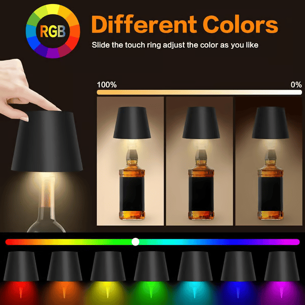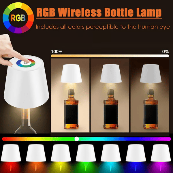 TOUCH DIMMABLE WIRELESS BOTTLE LIGHT : This wireless light is available in three colors, allowing you to create the perfect ambiance for any occasion.